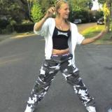 Ik heb blond haar, bruine ogen en een slank figuur