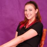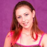 Heb rood haar, grijze ogen en een slank lijf